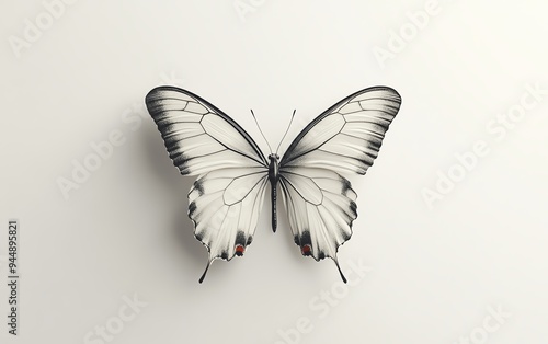 © Nattapat, Fototapeta premium Minimalist book cover featuring a single butterfly with intricate wing patterns