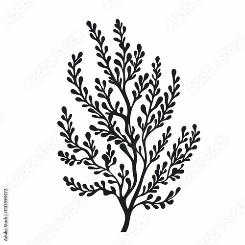 © suran, Naklejka premium Minimalist Botanical Design. Black and White Leaf Silhouette with Nature-Inspired Foliage for Modern Home Decor and Crafts