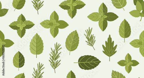 Fototapeta premium Minimalist Botanical Vector Pattern with Green Leaf Elements in Organic Style