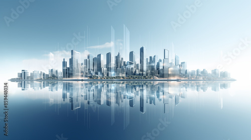 © W, Naklejka premium Minimalist bright city symmetrical skyline background