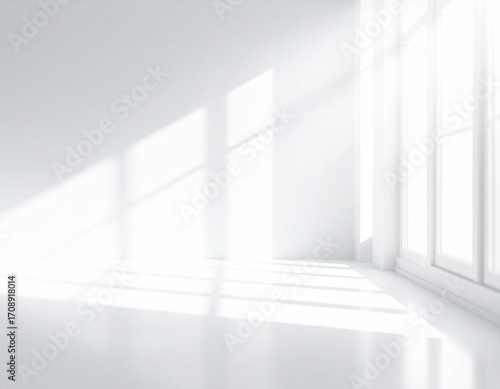© Ofida Studio, Obraz premium Minimalist Bright Empty Interior Room with Light and Shadow Architecture