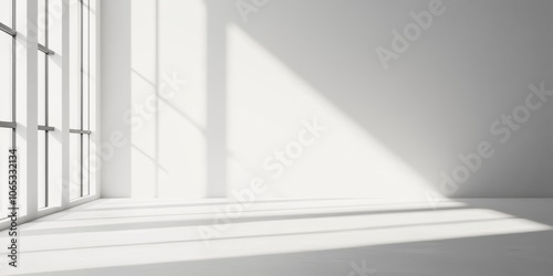 Obraz premium Minimalist bright white background with soft shadows from window light,...