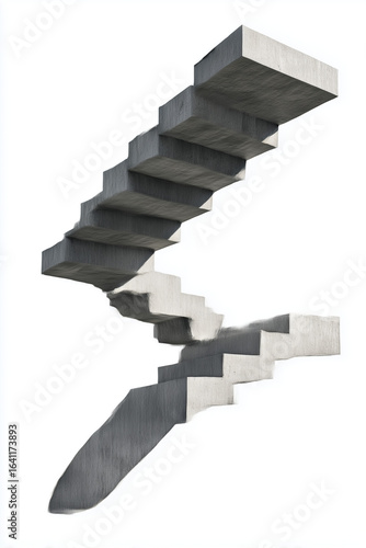© DreamLens Photograph, Fototapeta premium Minimalist brutalist floating concrete stairs isolated on white background. Modern architectural design with sharp shadows, clean lines, and sculptural geometry