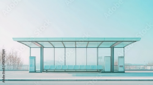 Fototapeta premium Minimalist Bus Stop Design in Soft Colors