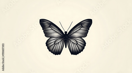Fototapeta premium Minimalist Butterfly Silhouette on White Background, Elegant Simplicity