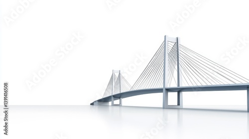 © อาริษา วันดี, Obraz premium Minimalist Cable-Stayed Bridge with Clear Sky and Reflection