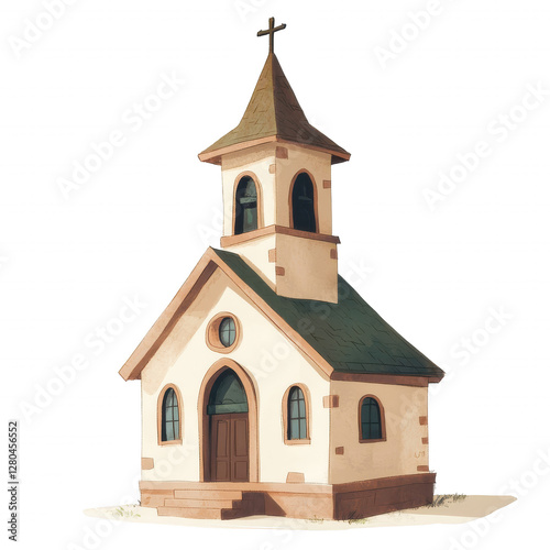 Fototapeta premium Minimalist Cartoon Church with Exaggerated Features on Transparent...