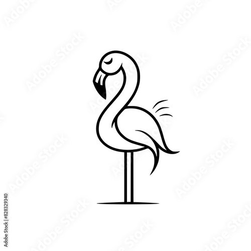 Fototapeta premium Minimalist Cartoon Flamingo Line Drawing,Simple black and white line art drawing of a cute flamingo, perfect for children's books, educational materials, and whimsical designs.