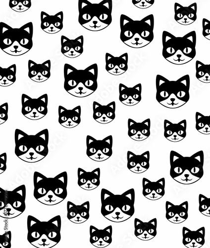 © Fernandes, Obraz premium Minimalist Cat Line Art Seamless Pattern Background