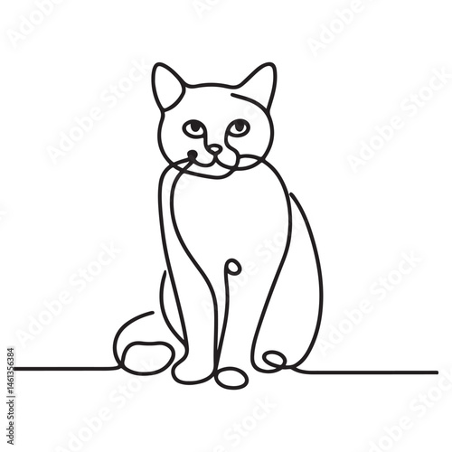 Obraz premium Minimalist Cat Line Art Sitting Calmly Graceful Silhouette Illustration