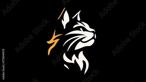 Fototapeta premium Minimalist cat silhouette in logo style, solid black background, clean and simple design