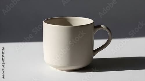 Obraz premium Minimalist ceramic mug with handle casting a long shadow on white surface