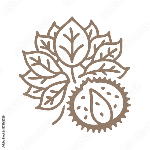 Obraz premium Minimalist Chestnut Tree Branch with Fruit