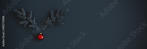 © hd3dsh, Fototapeta premium Minimalist Christmas composition featuring two pine branches arranged to resemble reindeer antlers. Christmas creative greeting card design with copy space and text. 3D Rendering, 3D Illustration