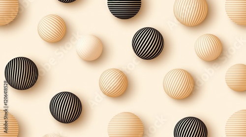 Fototapeta premium Minimalist circle and line seamless pattern in monochromatic tones, vector,...