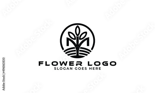 © MasloDesign, Obraz premium Minimalist Circle Flower Logo Template Design