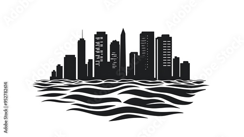 Naklejka premium Minimalist City Skyline Icon in Water - Cartoonish Vector Graphic