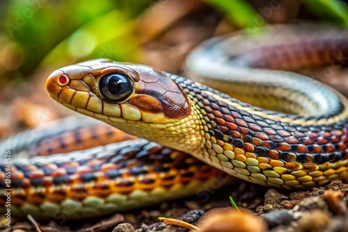 © Man888, Fototapeta premium Minimalist Close-Up: Xenopeltis Snake Skin, Forest Floor Camouflage