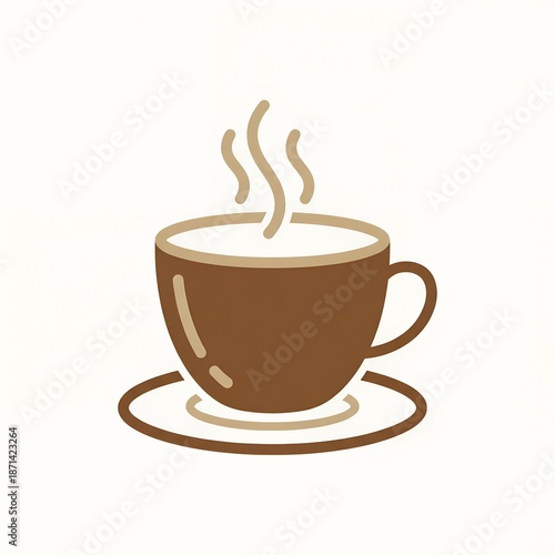 © Ziku, Obraz premium Minimalist Coffee Cup Illustration with Hot Steam Vapors