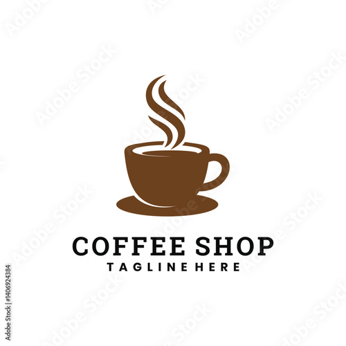 Obraz premium Minimalist coffee shop logo with brown cup and steam icon