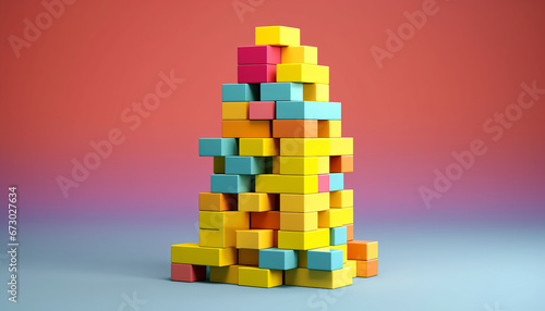 © JKLoma, Fototapeta premium Minimalist colorful block stack mockup.