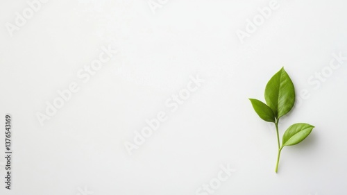 Fototapeta premium Minimalist composition of a delicate branch against a white background with large empty space, modern nature-inspired aesthetic with copy space.