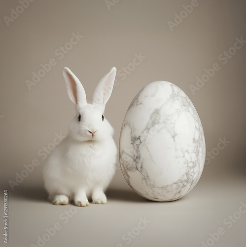 Obraz premium Minimalist composition with a white rabbit and a marble Easter egg