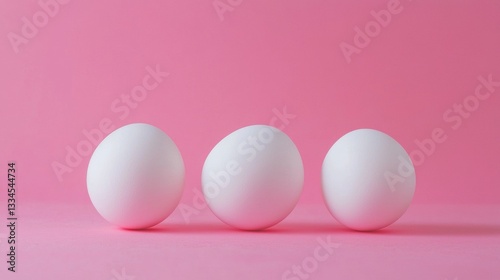 © Juan, Fototapeta premium Minimalist composition with three white spheres on pink background