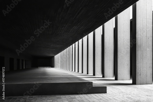 Fototapeta premium Minimalist Concrete Hallway: A stark, minimalist hallway bathed in the soft...