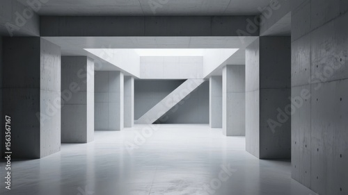 © meng, Obraz premium Minimalist Concrete Interior with Staircase and Pillars