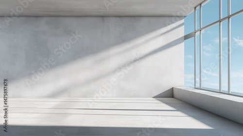 Obraz premium Minimalist concrete wall with large windows and soft light, embodying clean...