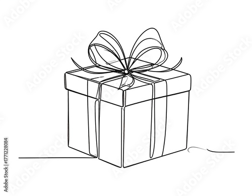 Obraz premium Minimalist continuous line drawing of a wrapped square gift box