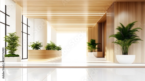 Fototapeta premium Minimalist corporate interior, 3D rendering with open spaces and modern detailing