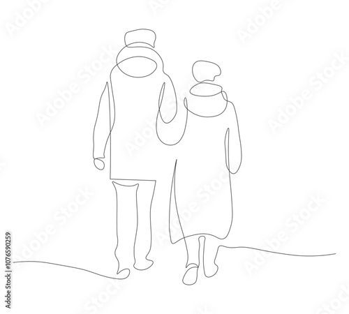 Fototapeta premium Minimalist Couple Walking Together Illustration. Simple Couple Walking...