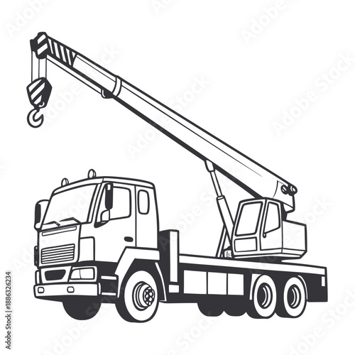 © Lacky, Fototapeta premium Minimalist crane truck, simple side view vector illustration.