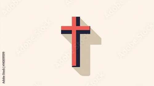 Fototapeta premium Minimalist cross icon designed with flat lines and shadows suitable for various artistic applications