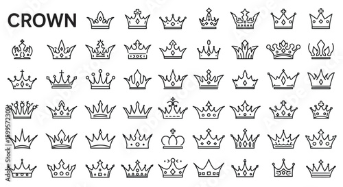 Fototapeta premium Minimalist Crown Vector Icon Set for Design