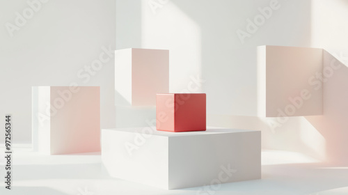 © warunthorn, Obraz premium Minimalist Cube Display.
