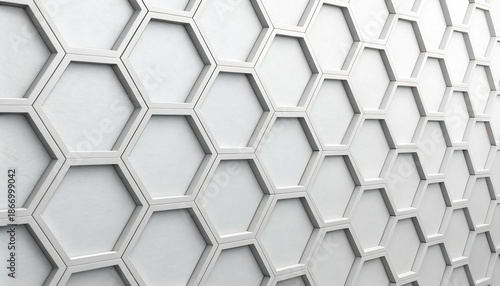 Fototapeta premium Minimalist 3D hexagonal pattern with clean white aesthetic, creating a modern...