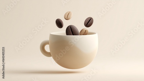 Obraz premium Minimalist 3D Kitchen Objects and Utensils, Soft Shapes and Flat Colors for Modern UI, Cooking Apps, and Creative Stock Visuals, coffee mug
