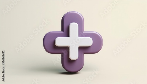 Fototapeta premium Minimalist 3D Purple Medical Cross Symbol Icon Sign