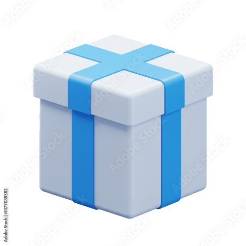 Obraz premium Minimalist 3D Render of a White Gift Box with Blue Ribbon Decoration