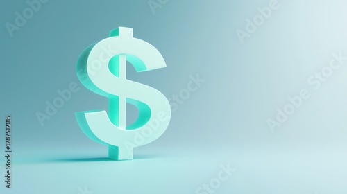 © Netthida Arsa, Obraz premium Minimalist 3D Rendering of a Glowing Green Dollar Symbol on a Soft Background