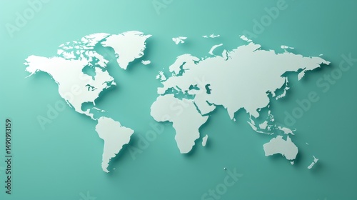© Vlad Darii, Fototapeta premium Minimalist 3d world map on soft blue gradient background representing earth in generative ai style