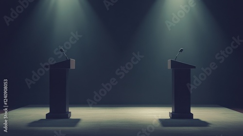 Naklejka premium Minimalist Debate Podiums with Soft Lighting