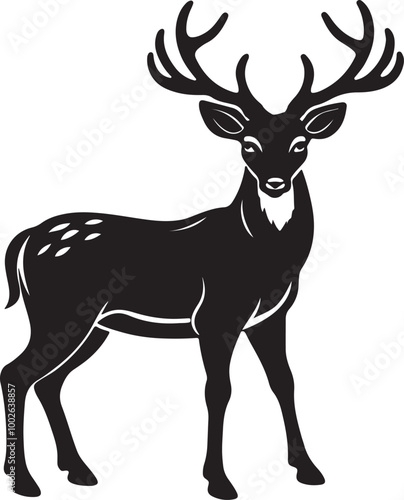 © Rubel Hossan, Obraz premium Minimalist deer silhouette in vector style on a white background, highlighting the animal's elegant shape