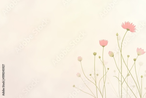 Naklejka premium Minimalist Delicate Pink Flowers in Peaceful Style with Copy Space