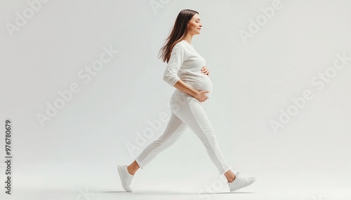 Fototapeta premium Minimalist depiction of a pregnant woman engaging in gentle exercises for...
