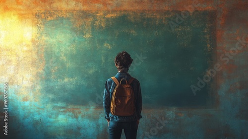 Obraz premium Minimalist depiction of a teacher in education with a serene expression...