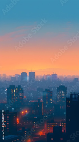 Obraz premium Minimalist Digital Cityscape at Sunrise with Geometric Shapes and Serene...